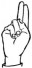 На ћирилици написано ЛЕНА ГРУЈЕСКОВИЋ састоји се из 15 слова [?]. Исписано ћириличном једноручном азбуком за глувонеме: